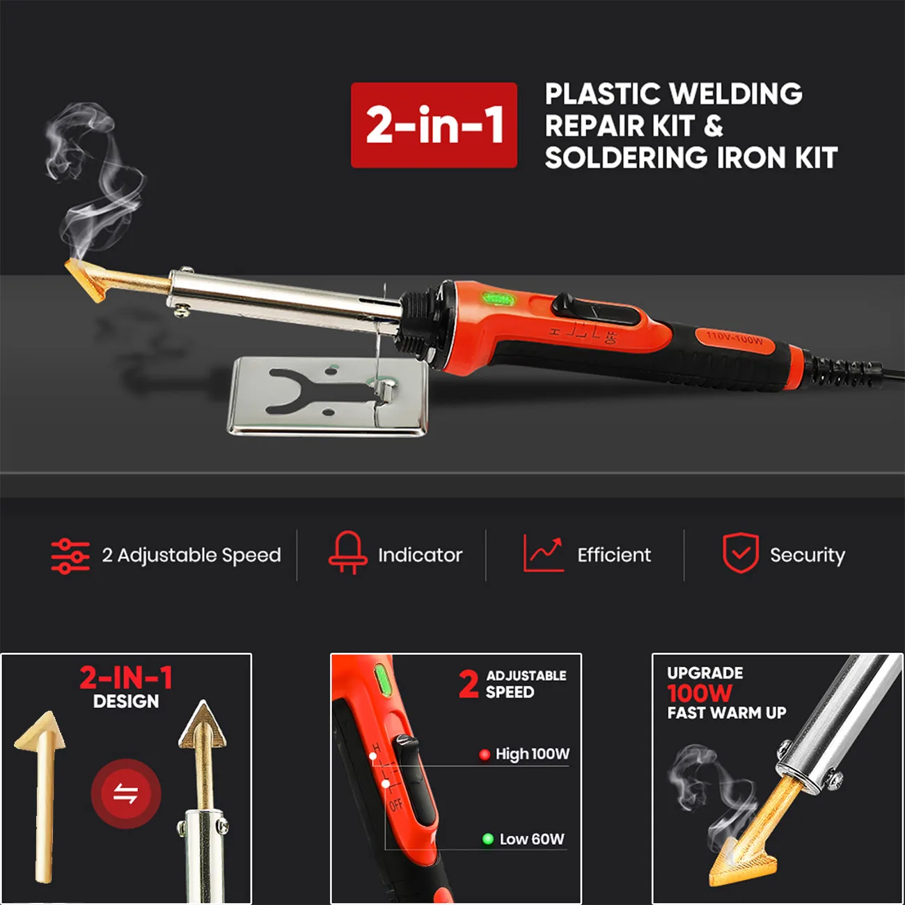 100w Plastic Welder, Plastic Welding Iron, Car Bumper Dashboard Kayak Canoe Repairs Tools Hot Staples Weld Gun Repair Kit