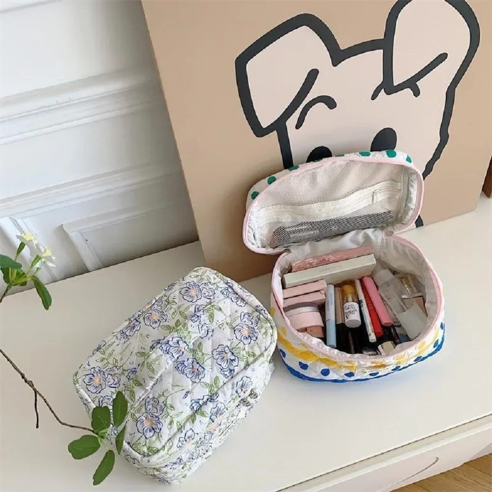 PREMIUM MATERlAL : The aesthetic makeup bag is made of high quality cotton fabric, which is notonly soft and comfortable to touch, but also very easy to care for, The zipper is smooth and durable foreasy access.floral cosmetic bag.