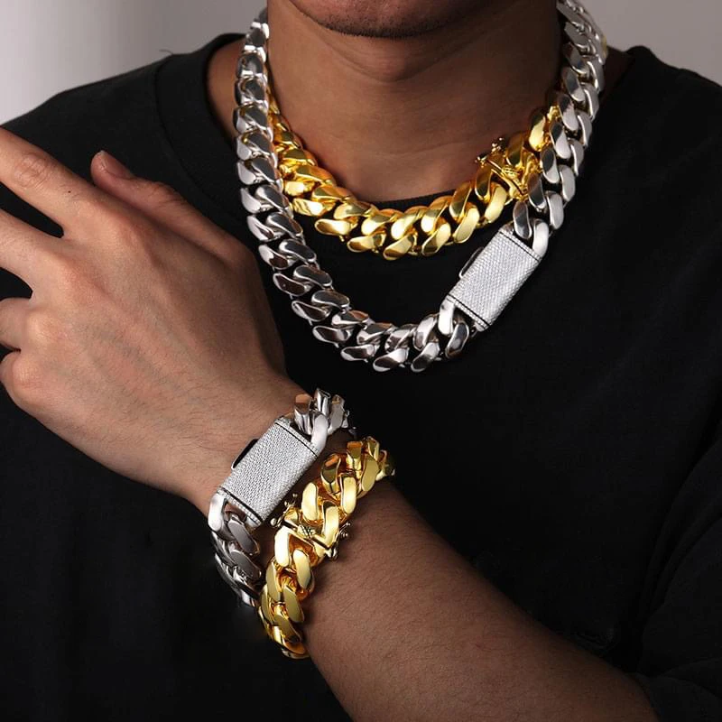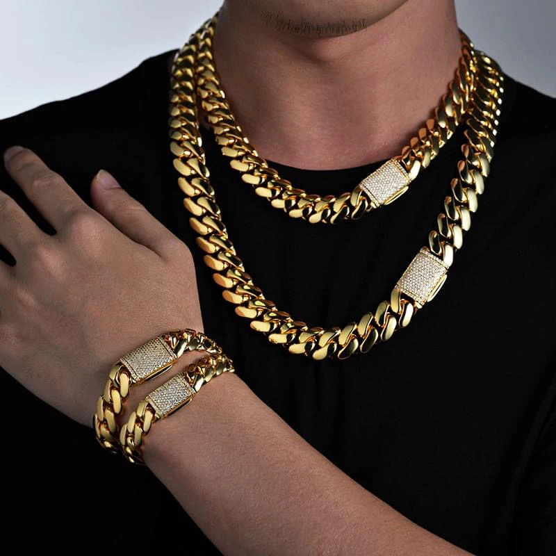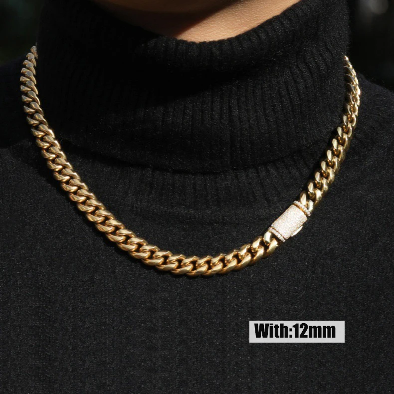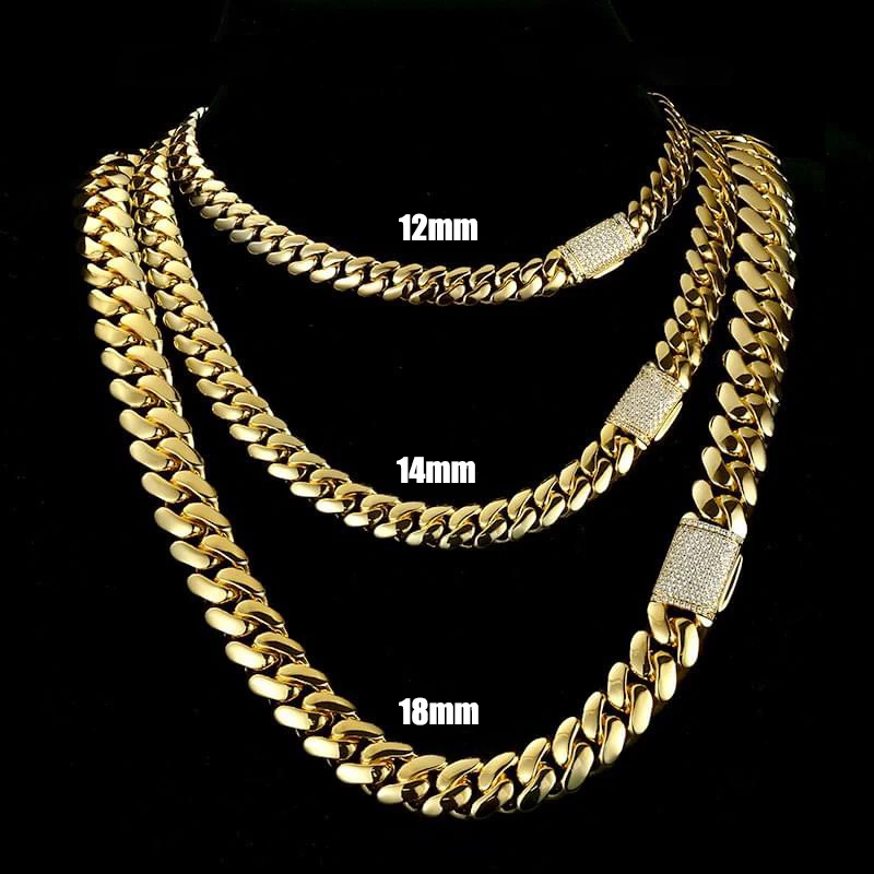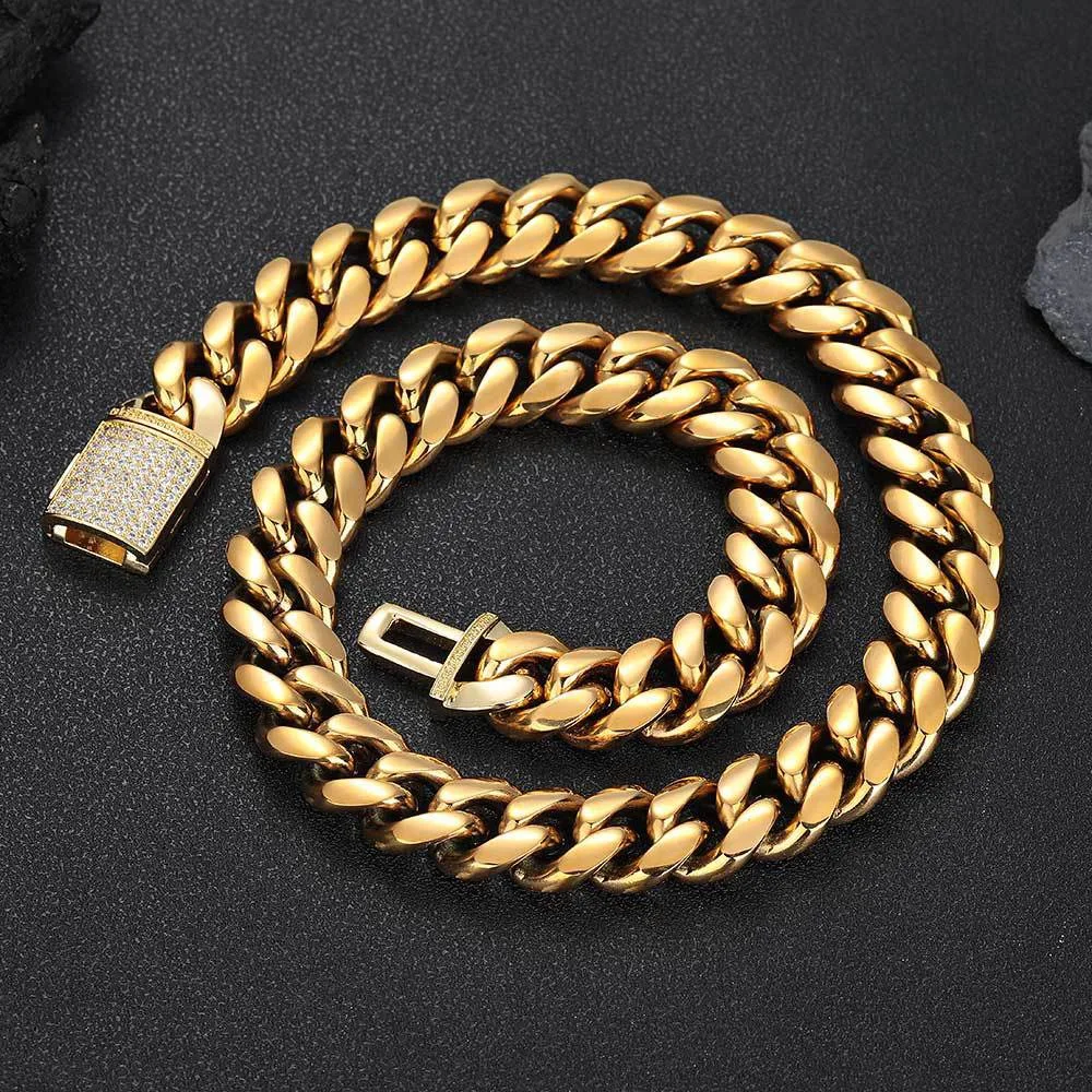 8-22mm Hip Hop Bling Iced Out 18k Gold-plated Stainless Steel Dense Cuban Miami Link Chain Necklaces for Unisex  Rapper Jewelry