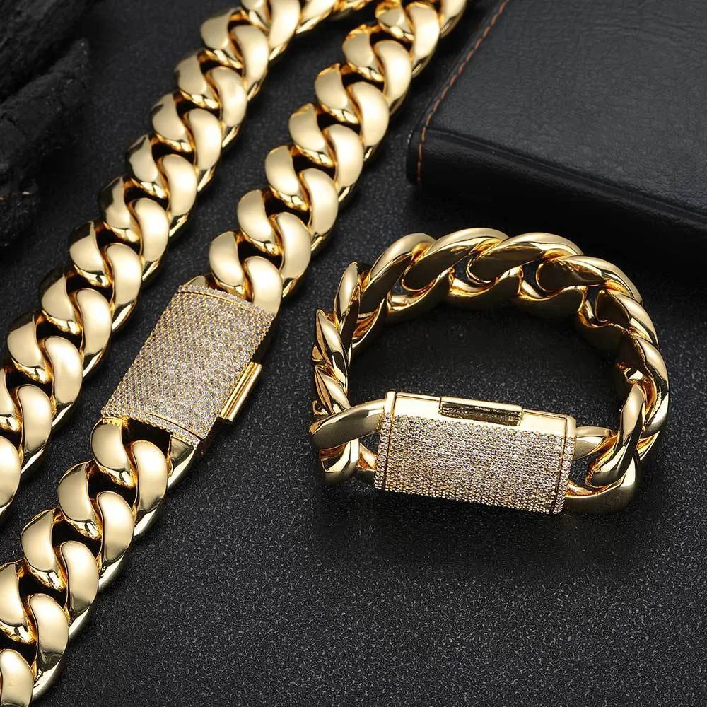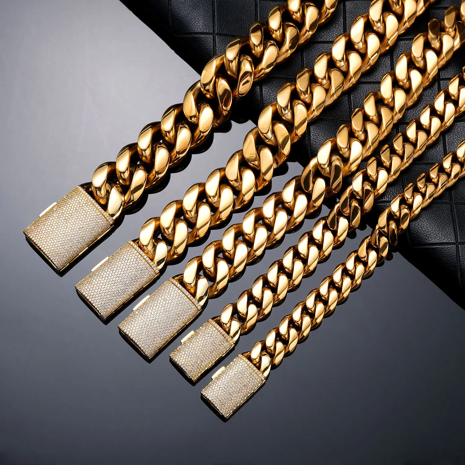 8-22mm Hip Hop Bling Iced Out 18k Gold-plated Stainless Steel Dense Cuban Miami Link Chain Necklaces for Unisex Rapper Jewelry