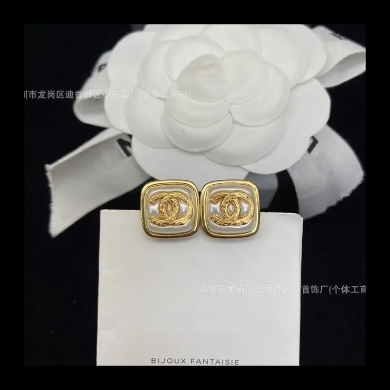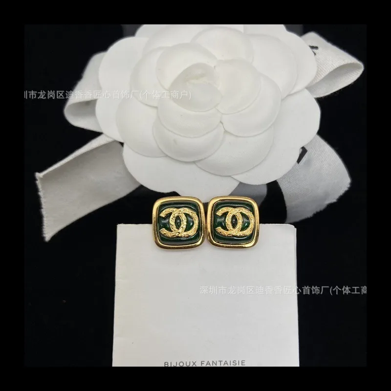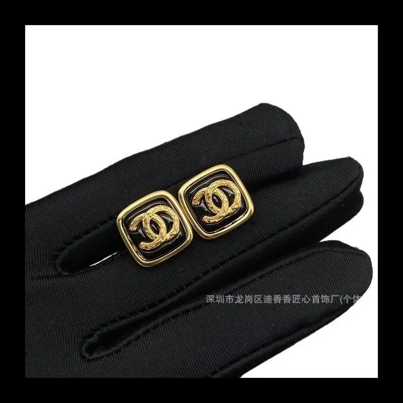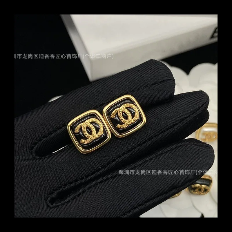 Double Sugar Stud Earrings Women's Fashion Black Square Pair with Label Tide