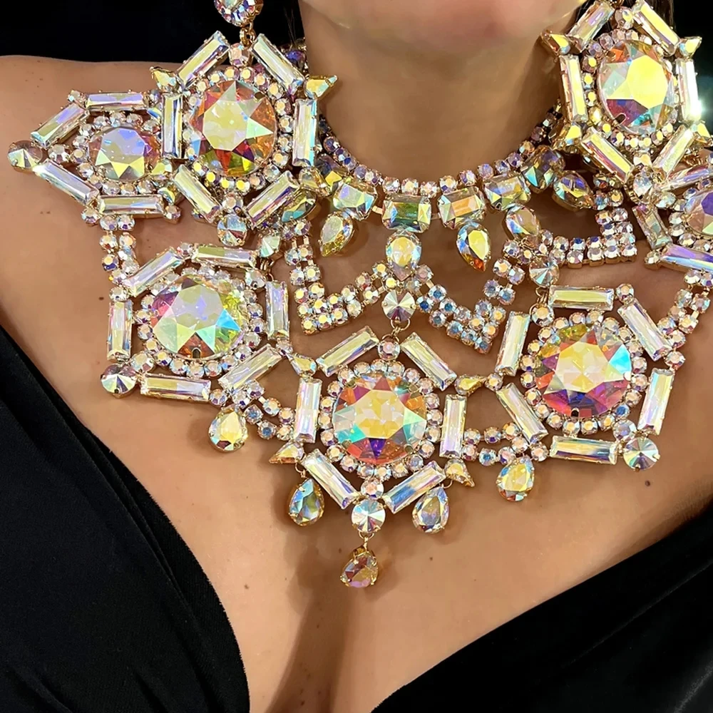 Exaggerated Necklace Choker Set Earring Costume Chunky Statement Big Necklace Jewelry Festival Crystal Drag Queen Carnival