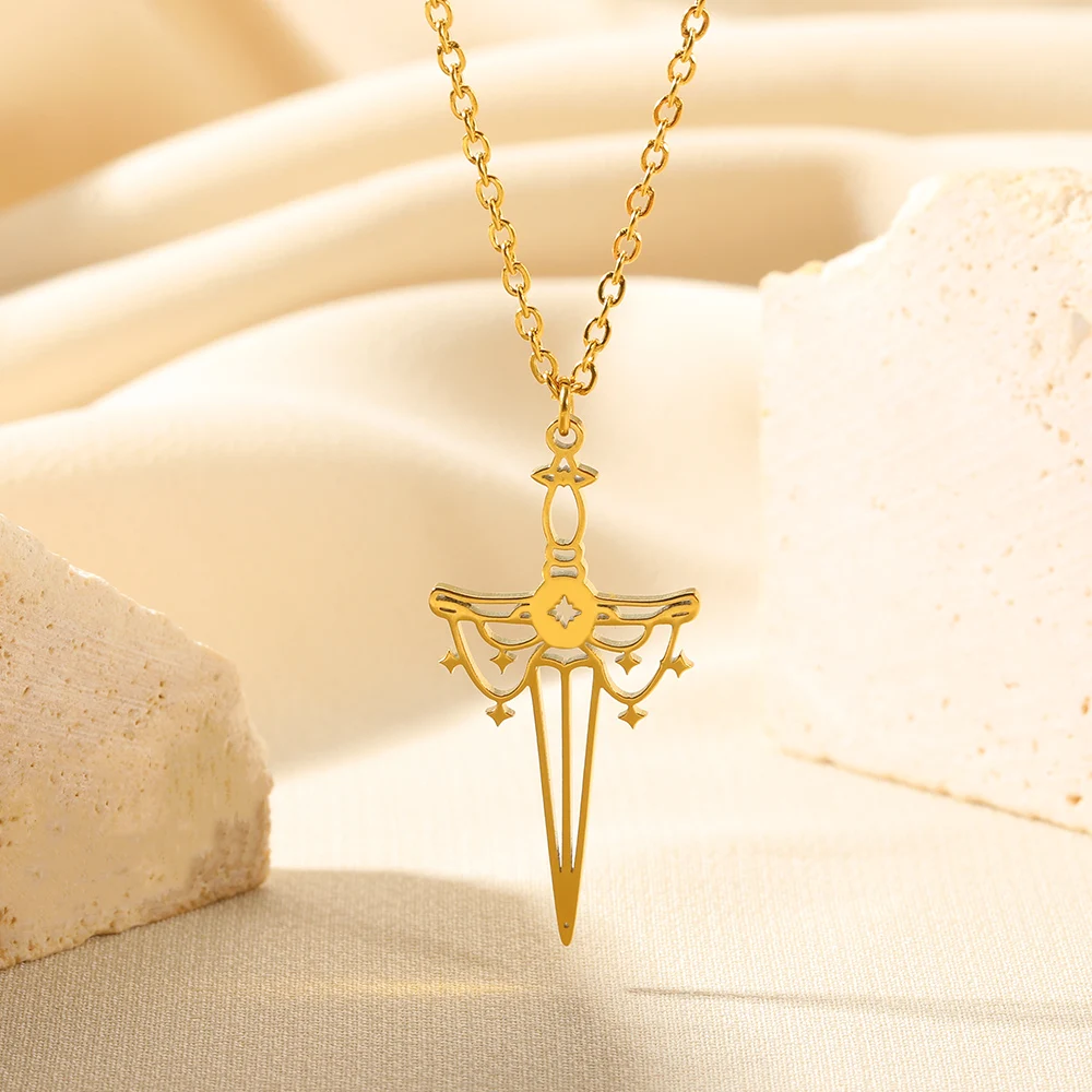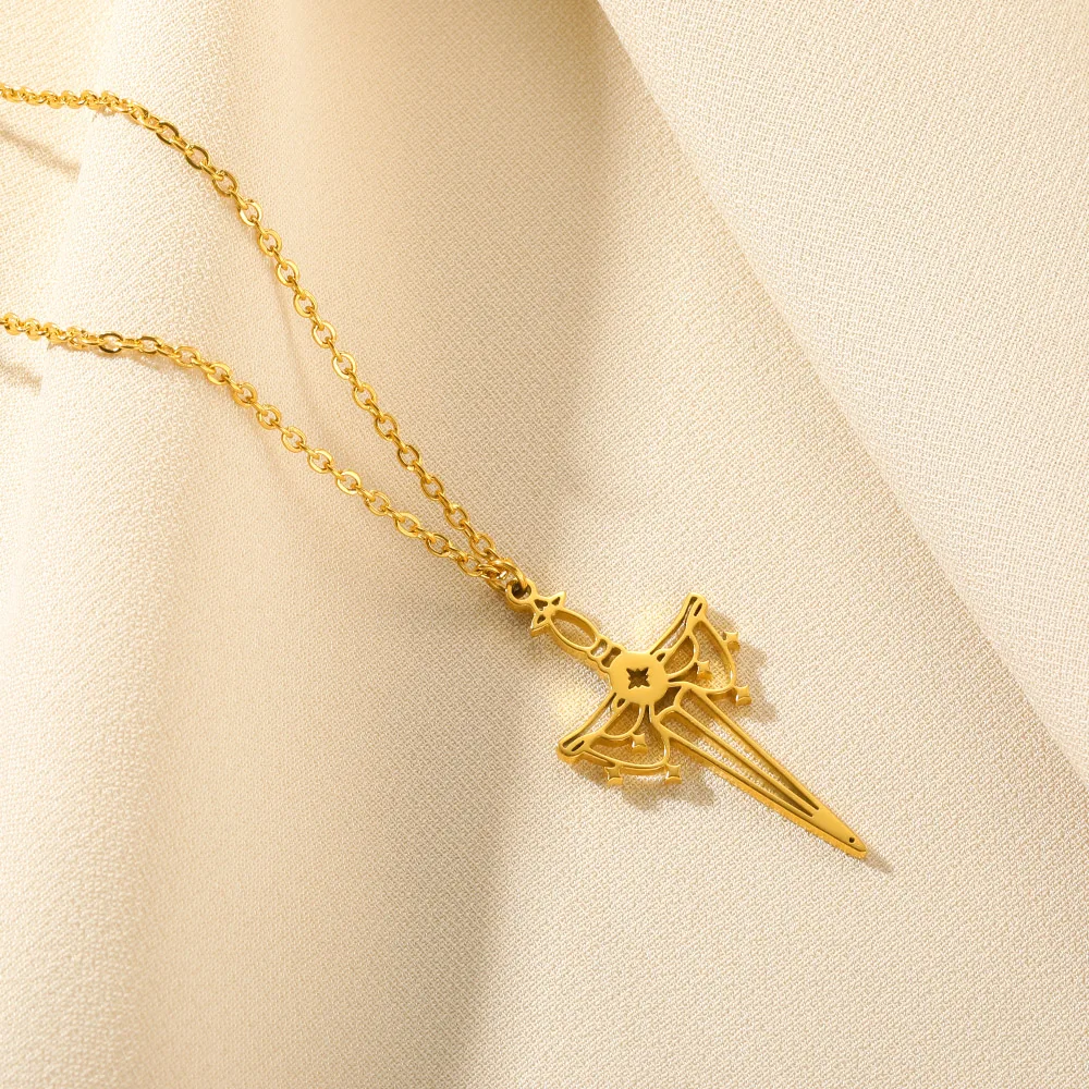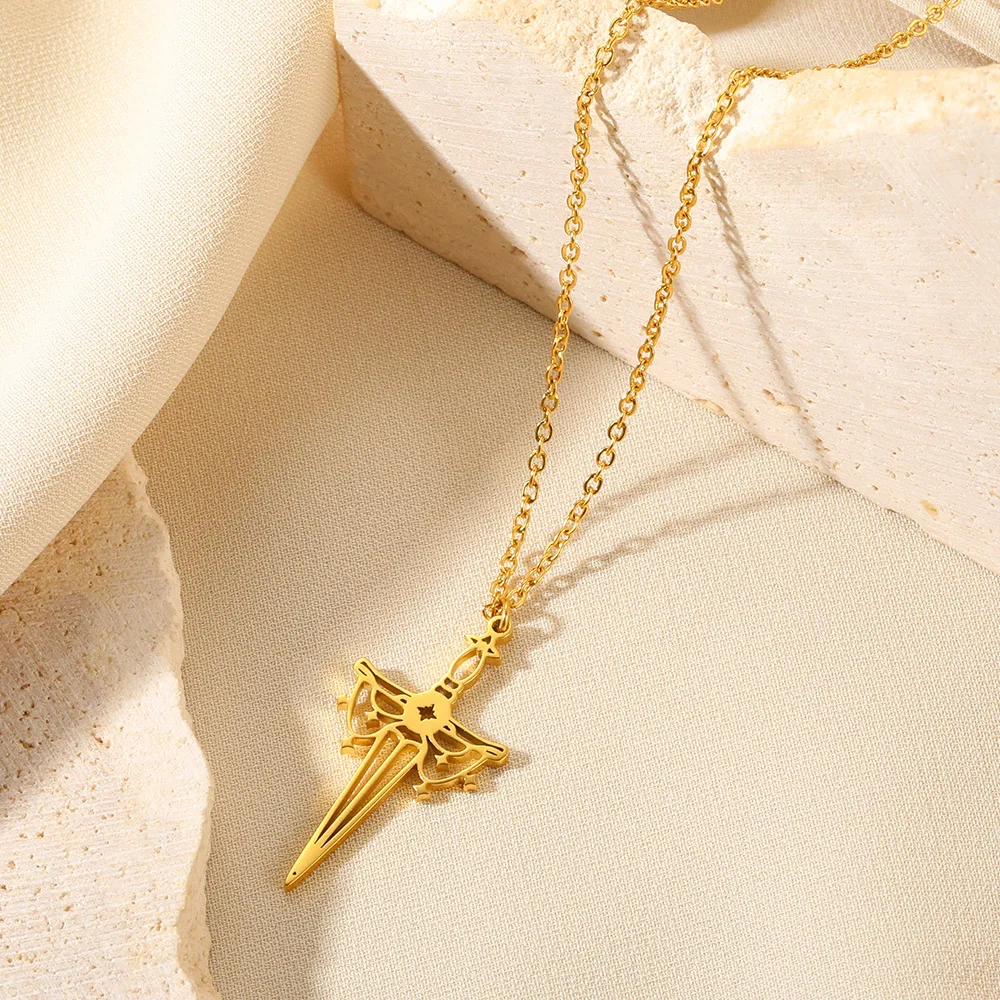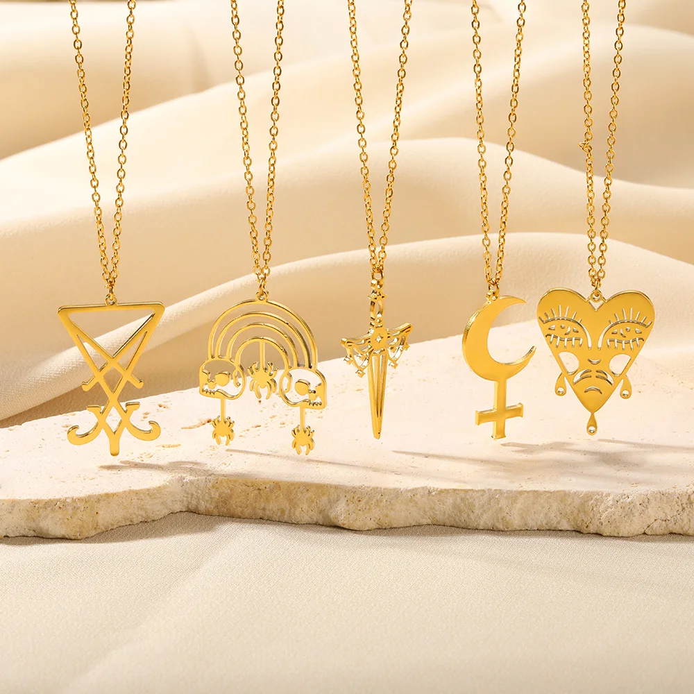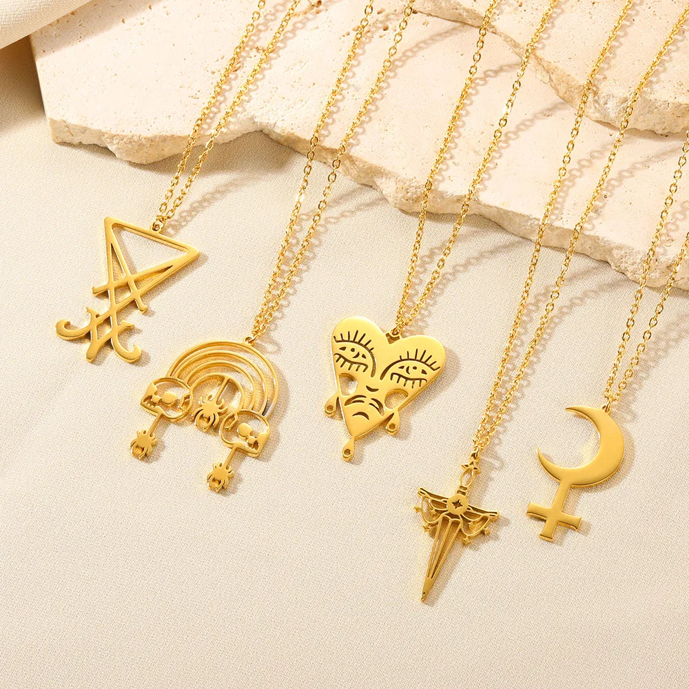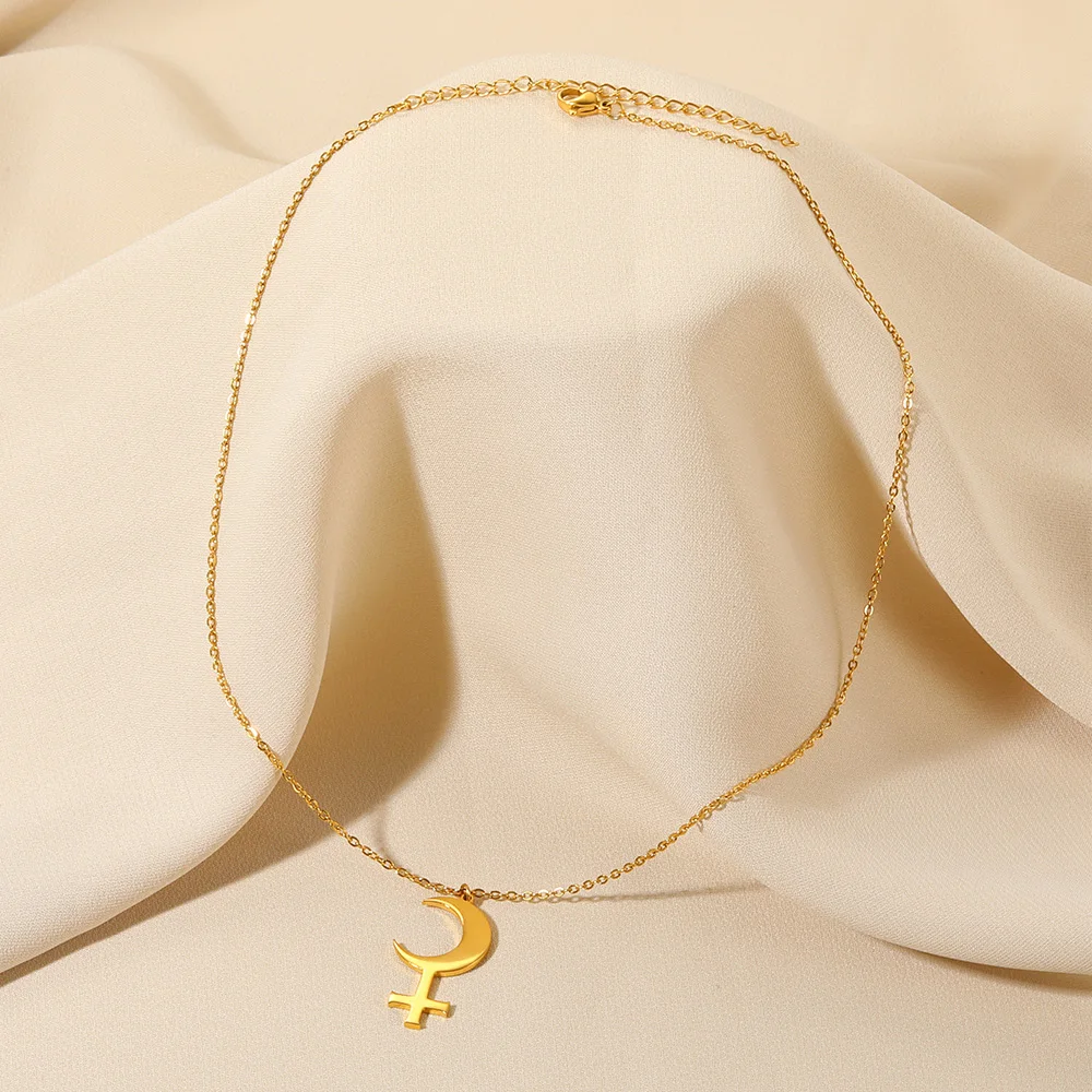 Gold Color Moon Cross Lilith Symbol Pendants Necklace For Women Stainless Steel Charms Astrological Symbol Sign Amulet Jewelry