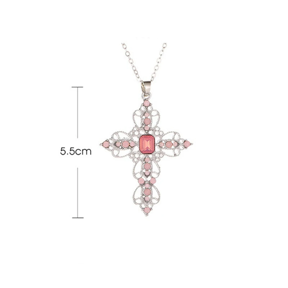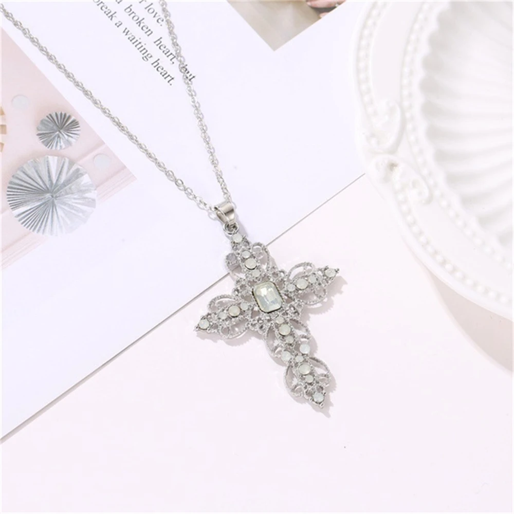 Gothic Big Zircon Cross Necklace Unisex Y2K Irregular Goth Large Cross Pendant Necklaces for Men Women Couple Necklace Jewelry