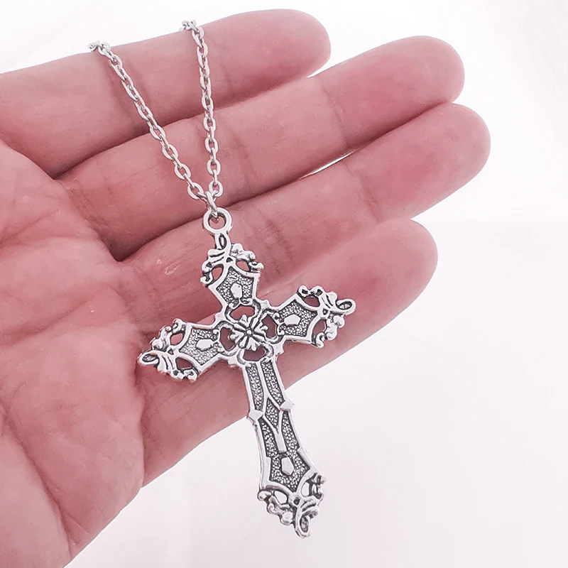 Gothic Big Zircon Cross Necklace Unisex Y2K Irregular Goth Large Cross Pendant Necklaces for Men Women Couple Necklace Jewelry