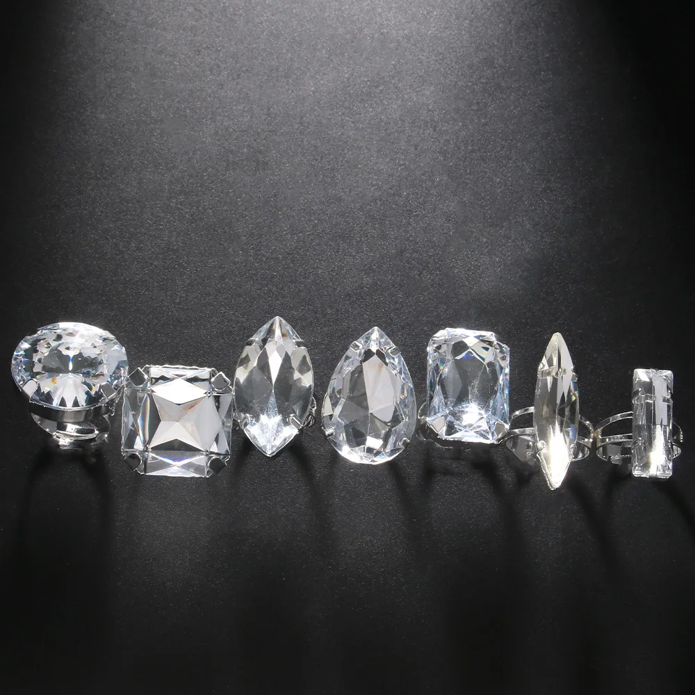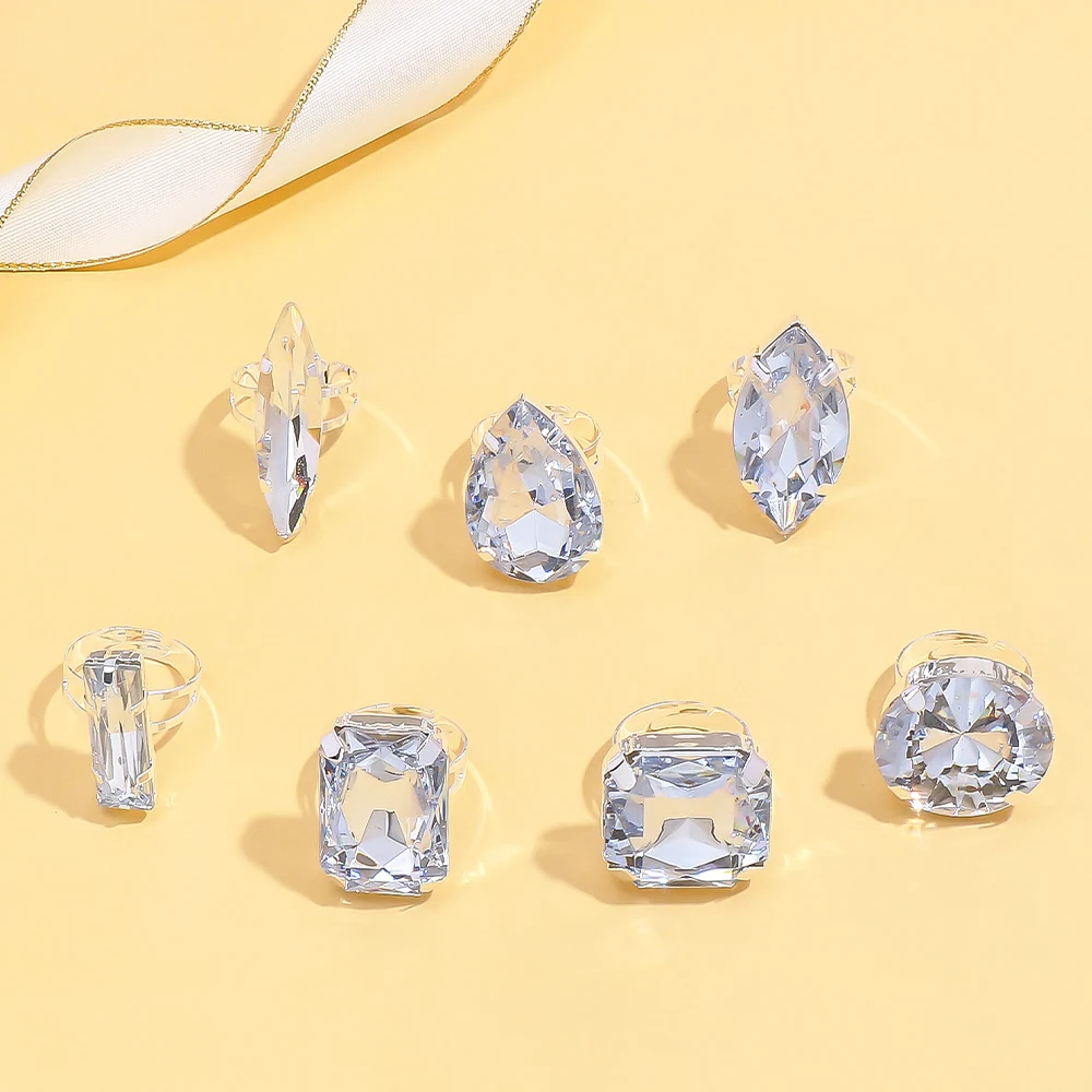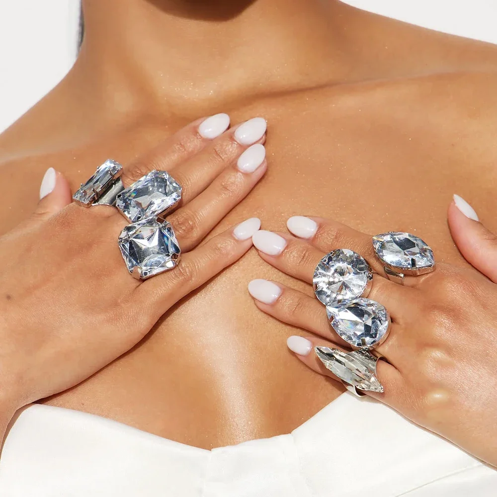 Stonefans 7Pcs Geometeric Open Rings Set Women Finger Accessories Fashion Design Handmade Crystal Rings Jewelry Cocktail Party