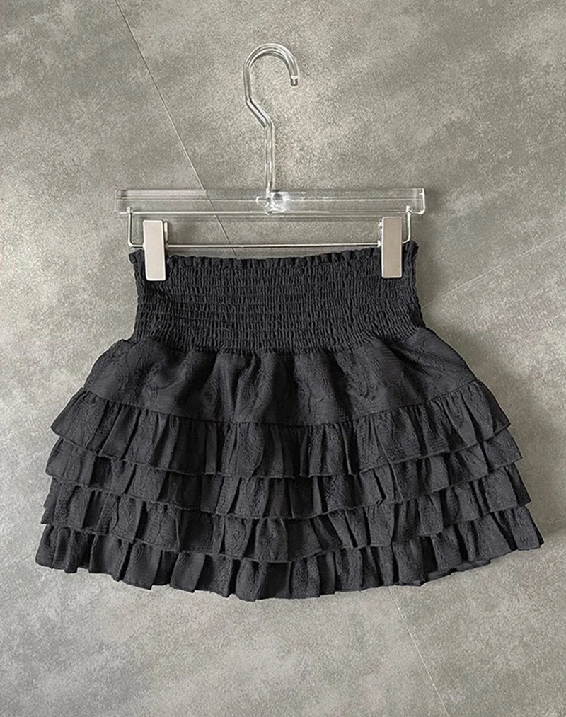 Streetwear Y2k Ruffles Mini Skirts Women Sweet Kawaii High Waist Lace A Line Skirt Summer Korean Fashion Black Ball Gown Skirts