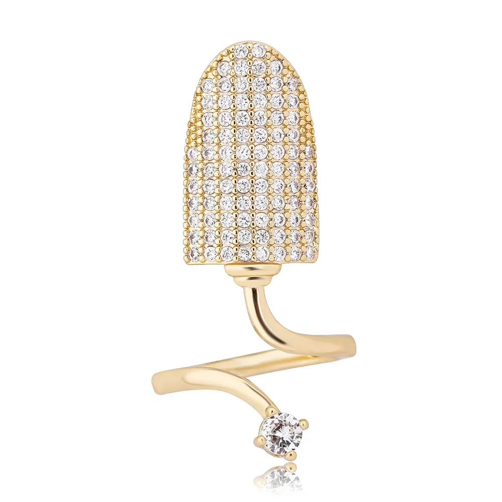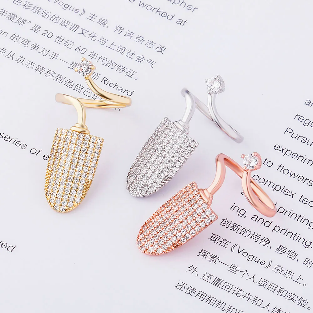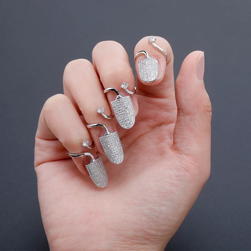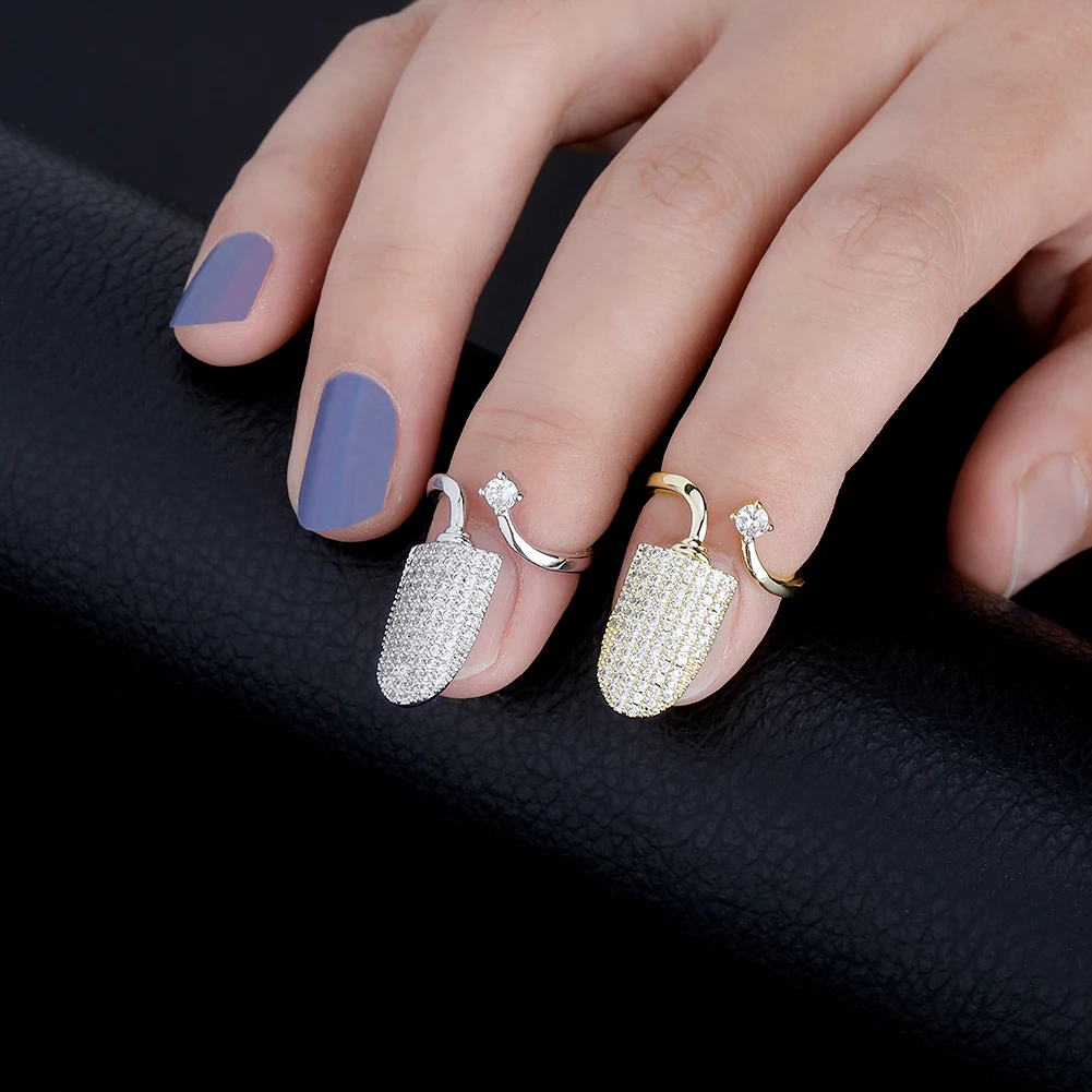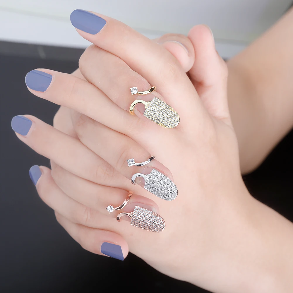 TOPGRILLZ New Nail Ring with White/Blue/Pink zircon Ring Full Iced Out Micro Pave Adjustable Ring Hip Hop Jewelry Gift For Women