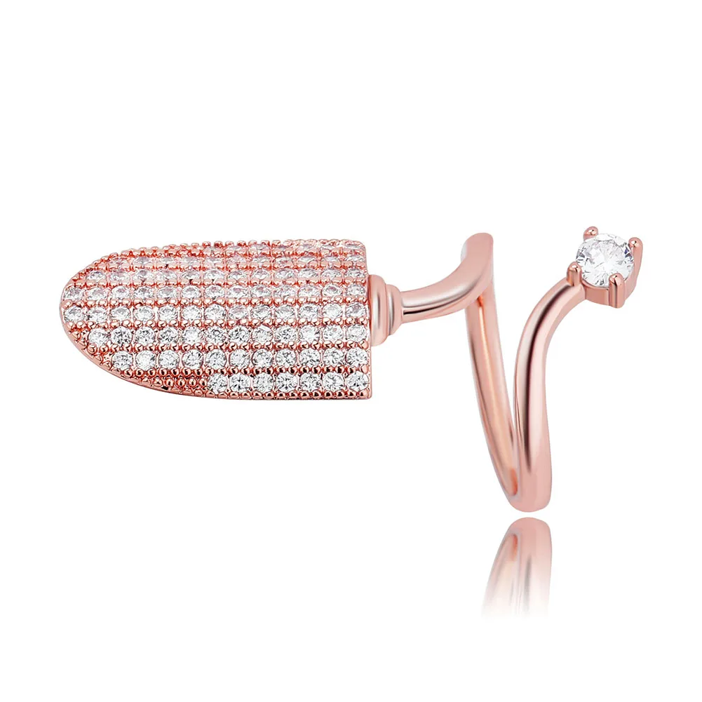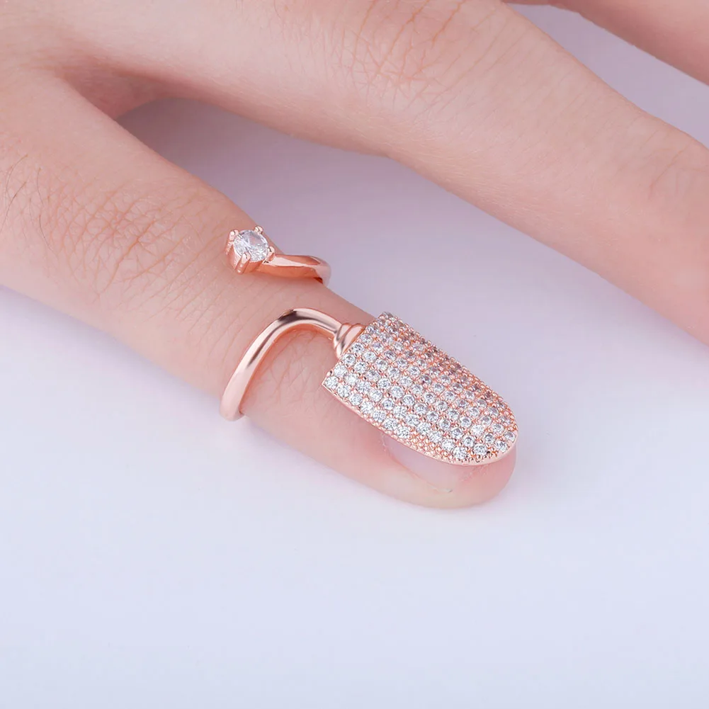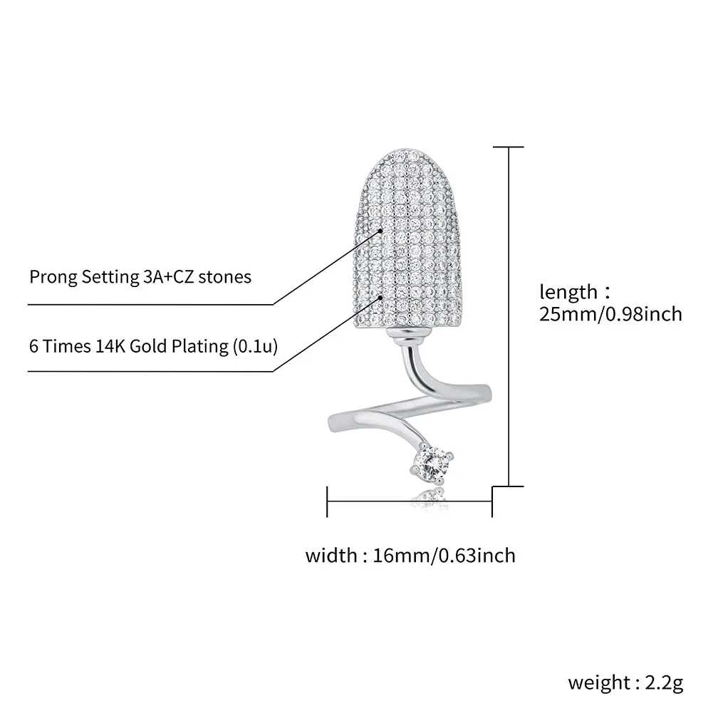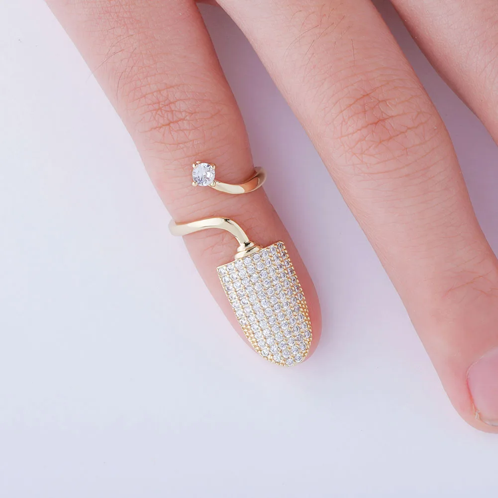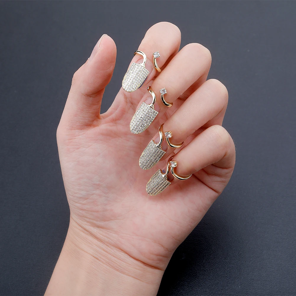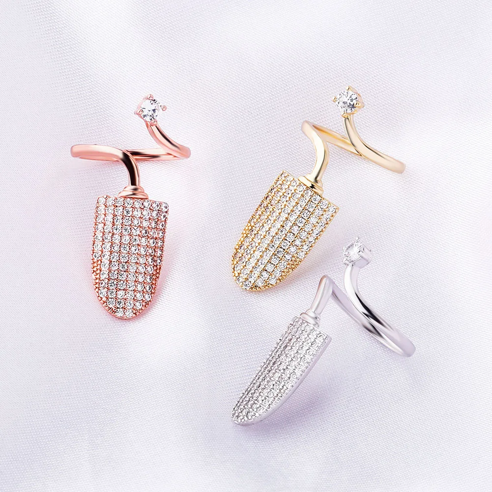 TOPGRILLZ New Nail Ring with White/Blue/Pink zircon Ring Full Iced Out Micro Pave Adjustable Ring Hip Hop Jewelry Gift For Women