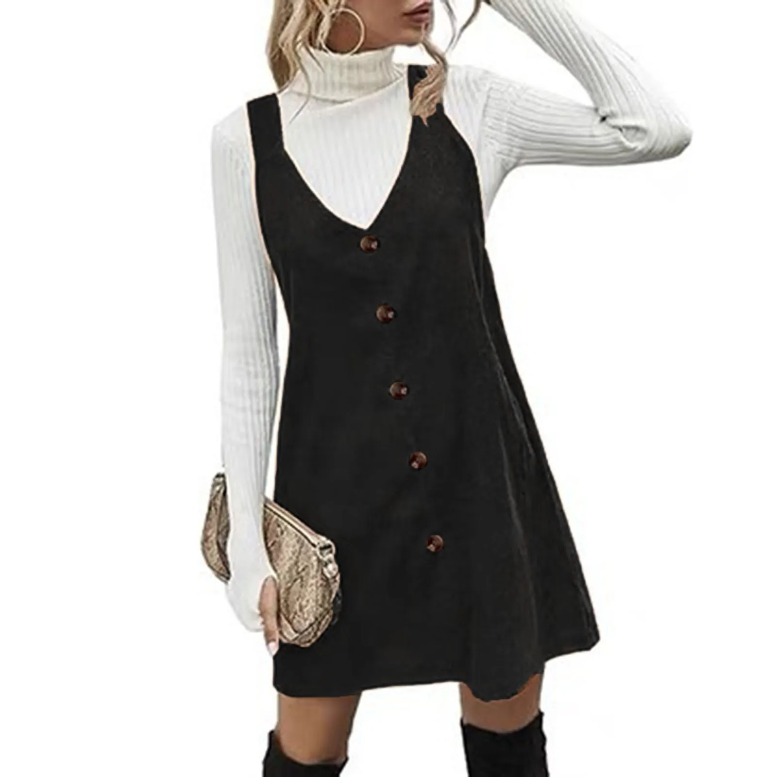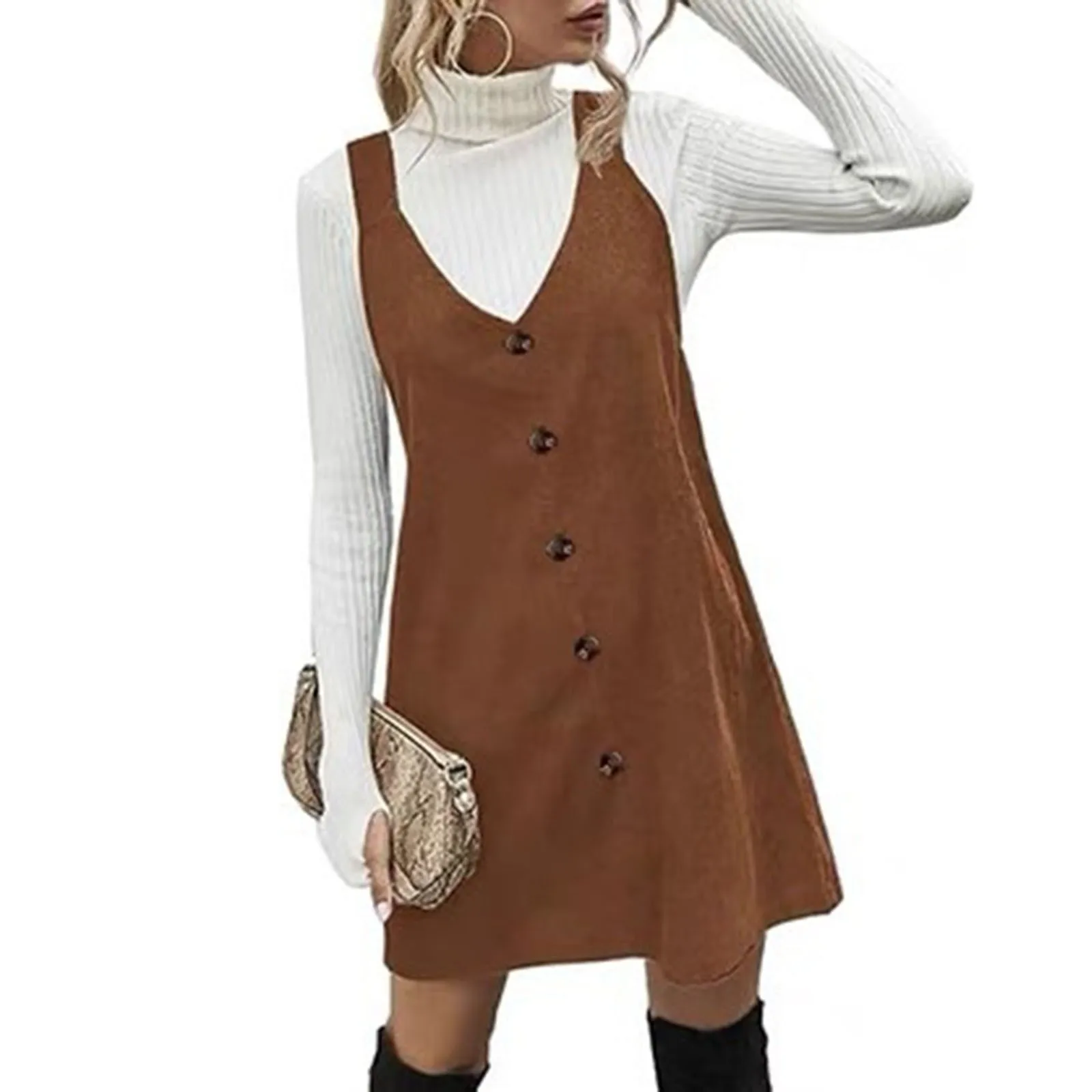 Women'S Dungaree Dress Corduroy A Line Mini Casual Outfits For Women A Line Dresses Mid Length Evening Dress